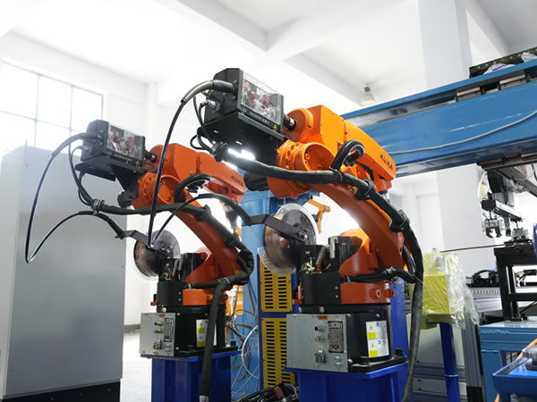 關鍵工藝技術的優化:沖環工位采用鋼絲在線制環成型技術,本技術由公司創新研發,突破了傳統預制鋼環人工套環的工藝瓶頸,減少了工序環節,降低了錨桿制造成本。焊接環節配備雙工位六軸機器人焊接系統,搭載自動尋位跟蹤技術與脈沖MAG焊接工藝,可調式定位系統,兼容更多規格產品,焊接效率高、焊縫表面成型均勻光滑,無飛濺、氣孔等缺陷,焊接質量達到ISO5817-B級標準。